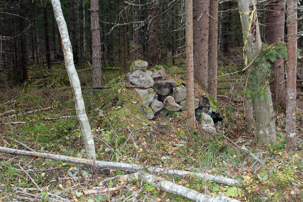 Lämningarna av en kolarkoja vittnar om att skogen tidigare brukats.