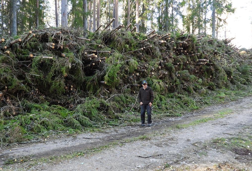 maskinföraren Rolf Lindfors som ”klipper” granar inom området.