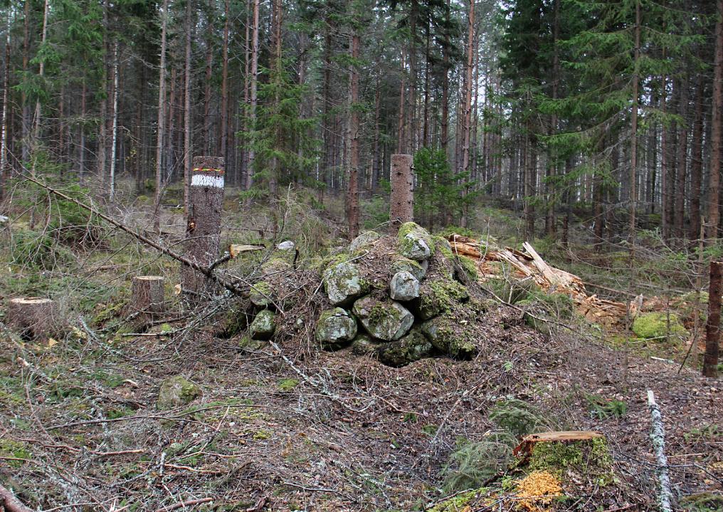 Lämningarna av en kolarkoja vittnar om att skogen tidigare brukats.